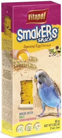 Smakers będący zarówno smakołykiem i jak i pożywnym dodatkiem do codziennej diety papużek falistych. Białko z jaj zapewnia wszystkie niezbędne dla prawidłowego funkcjonowania organizmu aminokwasy. Niezbędny dodatek w żywieniu ptaków przed i w czasie lęgów oraz w okresie pierzenia. Stanowi również idealne uzupełnienie diety ptaków w czasie spoczynku.