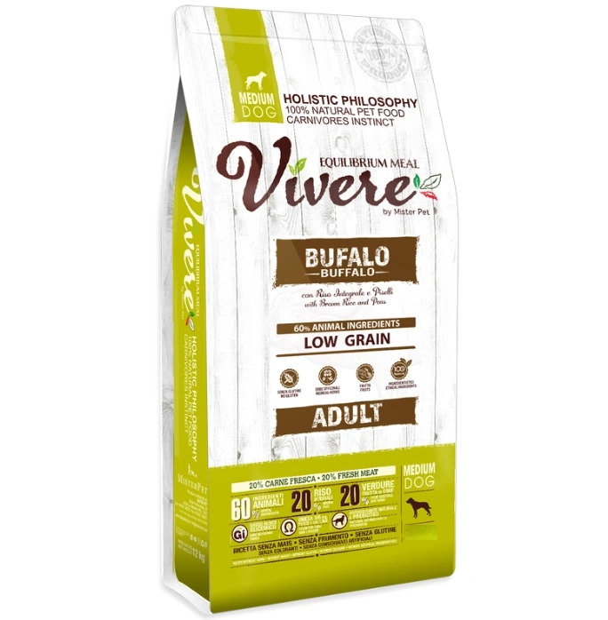 • Vivere Dog Medium Adult to sucha karma pełnoporcjowa dla psów dorosłych ras średnich z bawołem.