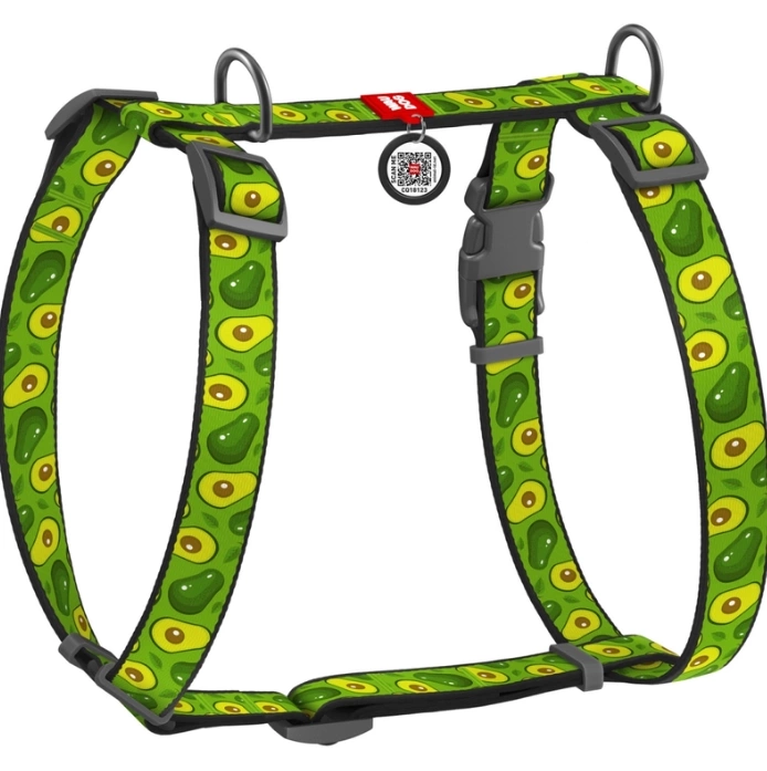 - WAUDOG Nylonowe Szelki Dla Psa Awokado Adresówka QR XL to stylowe szelki w kształcie litery H, w owocowym wzorze.