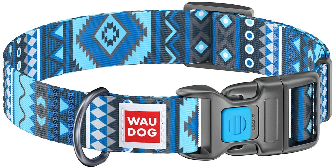 Obroża dla psa WAUDOG z motywem Etno geometryczne wzory - niebiesko-szara.