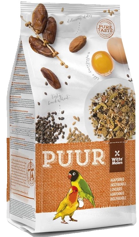Witte Molen Puur Lovebirds to mieszanka bogata w odżywcze białko kompozycja. Wzbogacona aromatycznymi daktylami.