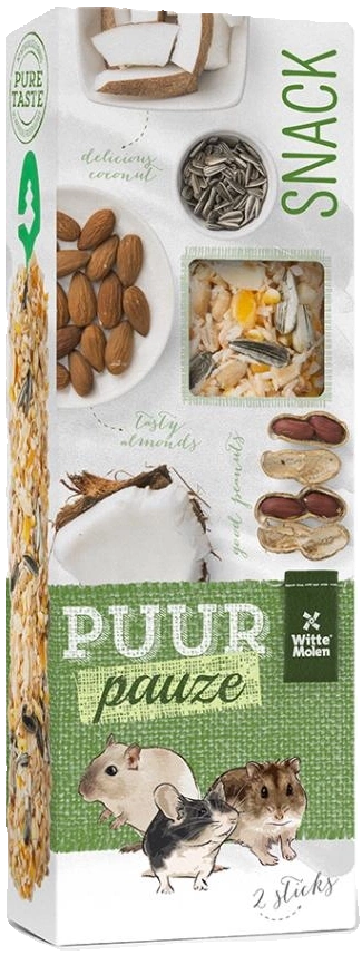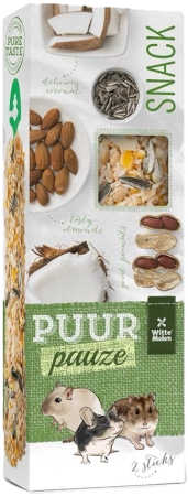 Witte Molen Puur Kolby Dla Gryzonia Migdał Kokos 110g to uzupełniająca karma dla małych zwierząt.