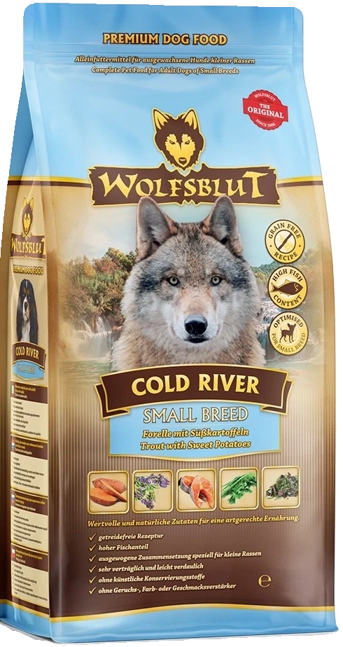 - Wolfsblut Cold River Karma Dla Psa Rasa Mała Pstrąg 7,5kg to pożywna karma bez dodatku zbóż dla Twojego pupila małej rasy.