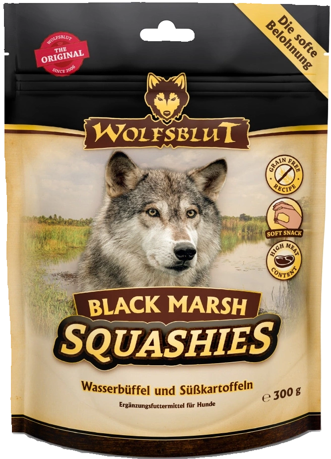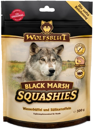 Wolfsblut Squashies to miękkie przekąski dla psów bez zbóż i glutenu, z dużą zawartością mięsa. Dynia nie zawiera również cukru produkowanego przemysłowo, barwników, substancji zapachowych, atraktantów, wypełniaczy i konserwantów ani chemicznych przeciwutleniaczy.