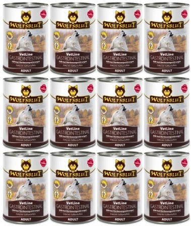 Wolfsblut Dog VetLine Gastro Karma Dla Psa 12x395g to pełnoporcjowa karma dla psów dorosłych, wszystkich ras. Zestaw 12 puszek.