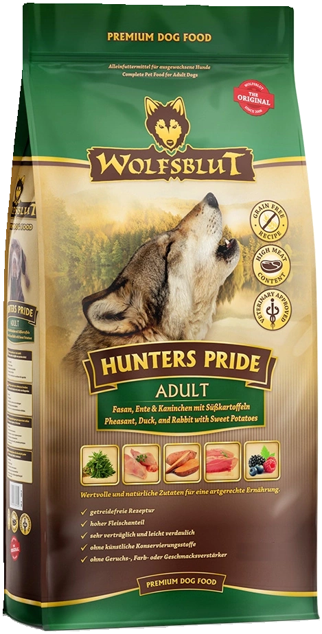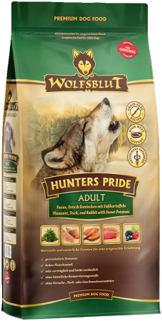 - Wolfsblut Hunters Pride to pełnoporcjowa karma sucha dla psów dorosłych z wysoką zawartością mięsa z bażanta i kaczki.