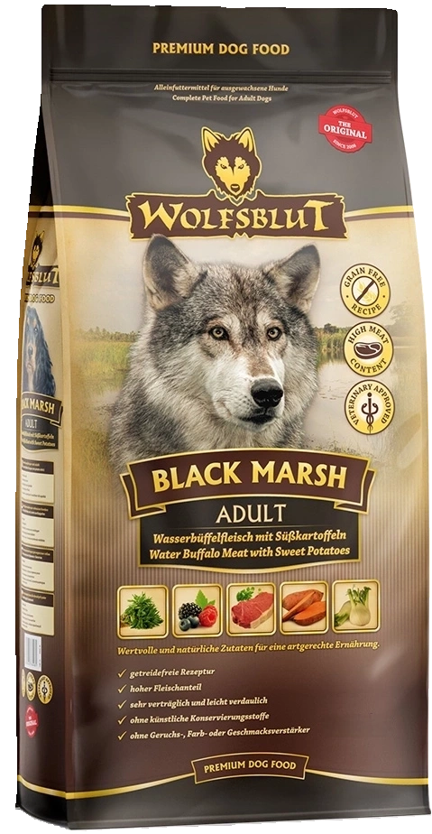 - Wolfsblut Black Marsh to sucha karma dla psów z bawołem i dodatkiem dyni.
