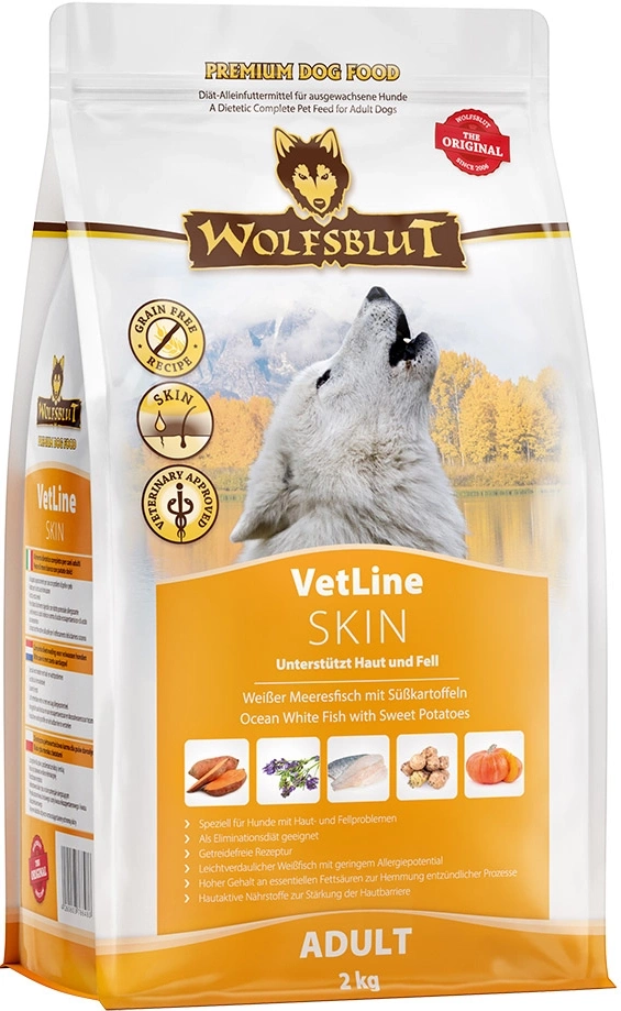 - Wolfsblut Karma Dla Psa VetLine Skin 2kg to specjalistyczna karma dla psów borykających się z chorobami skóry. Bez zbóż.
