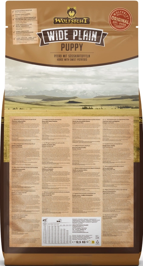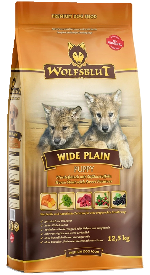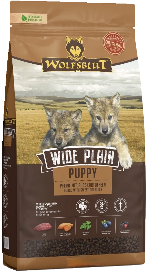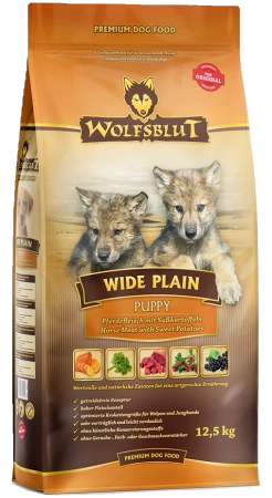 - Wolfsblut Wide Plain Puppy to sucha karma dla szczeniąt z koniną.