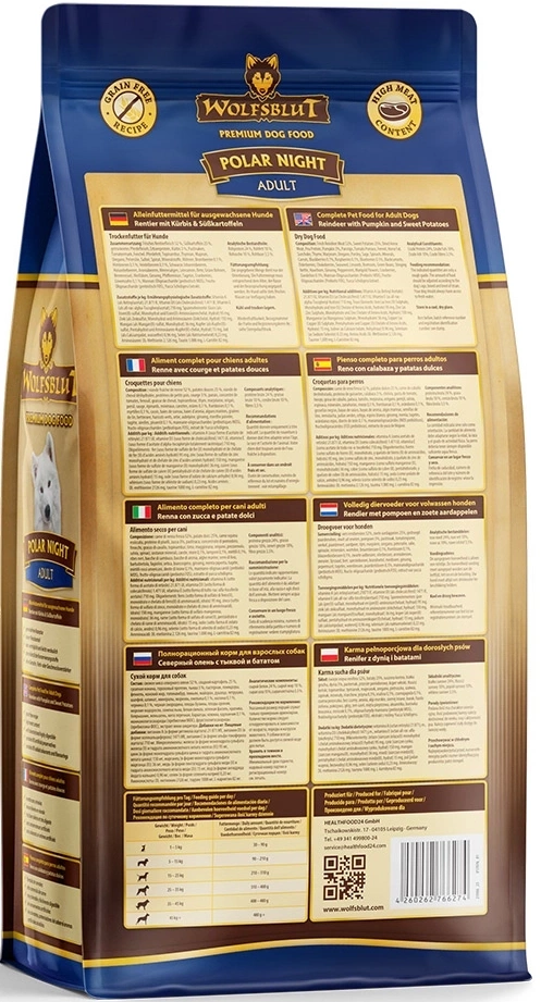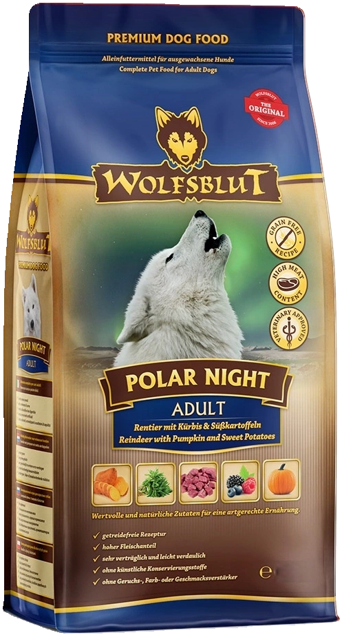 - Wolfsblut Polar Night to pełnoporcjowa sucha karma dla psa z reniferem.