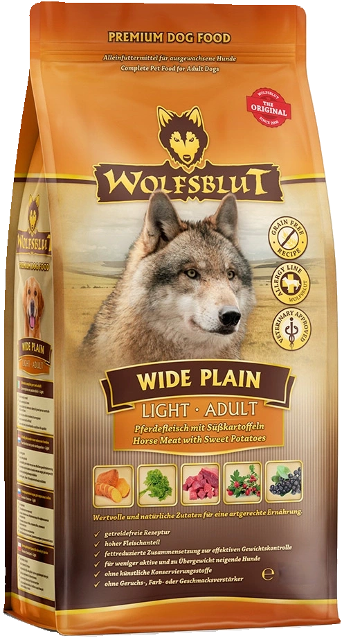 - Wolfsblut Wide Plain Light to pełnoporcjowa sucha karma dla psów z tendencją do nadwagi i otyłości z koniną.