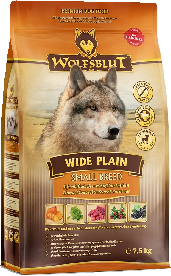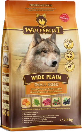 Wolfsblut Wide Plain Small Karma dla Psa Konina 7,5kg Wolfsblut Dog Wide Plain Small to sucha karma dla psów małych z koniną i dodatkiem batatów.