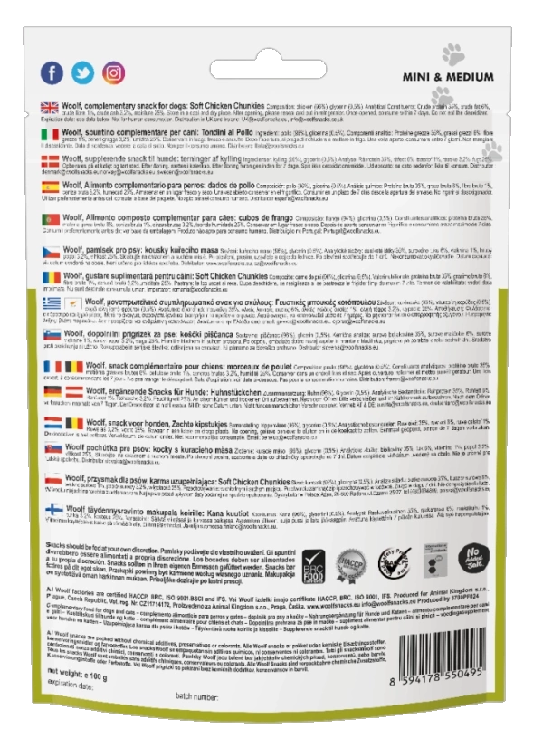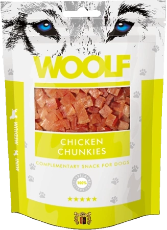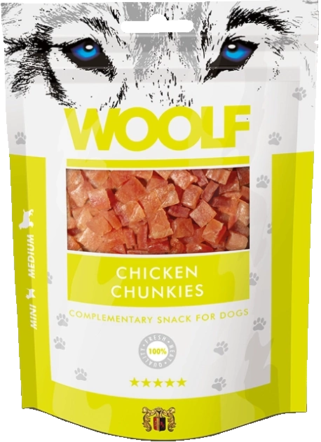 Woolf Chicken Chunkies to pyszne przekąski dla psów. Idealnie sprawdzą się jako dodatek diety oraz nagroda podczas treningu. Zaspokoją również naturalny instynkt żucia u psów.