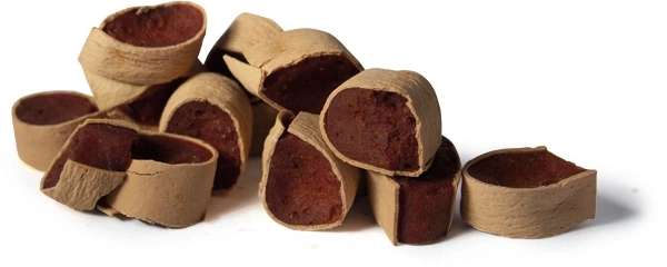 Przekąska nie zawiera konserwantów i sztucznych dodatków, została sporządzona z wartościowego mięsa kurczaka i dorsza.