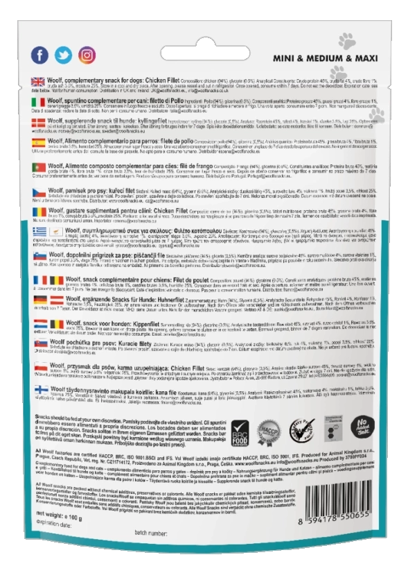 Woolf Przysmak Pies Chicken Fillet, 100G to zdrowy i pożywny przysmak dla psa, doskonały dla psów wszystkich rozmiarów.