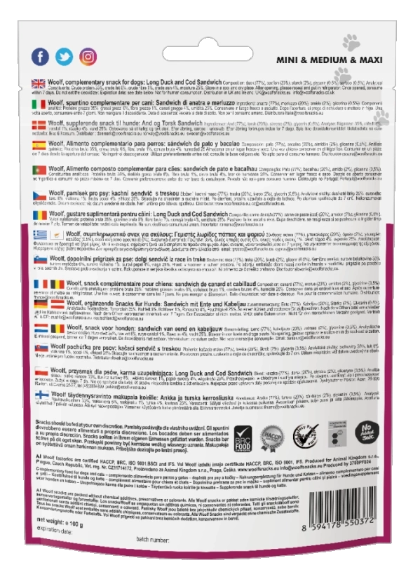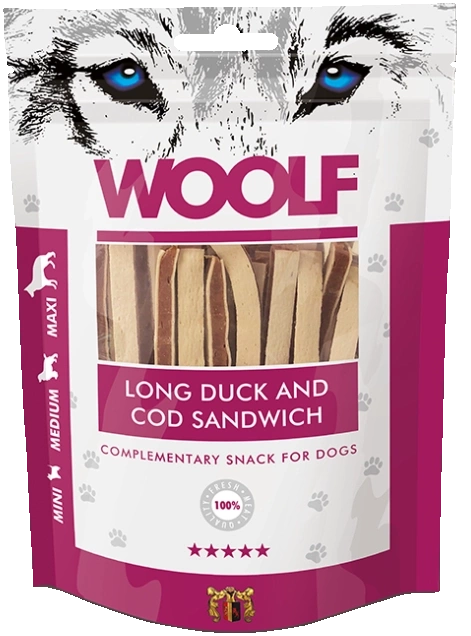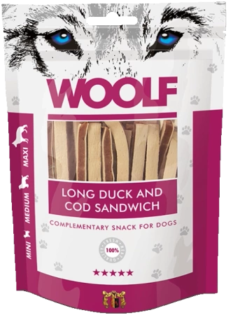 Woolf Kaczka z Dorszem - swietne polaczenoe snakow dla pieskow. Spokojnie nadaje eie doa malych i srednich pieskow. Moj poesek perda zawsze oginkuem jak tylko siegam paczke z lodowki