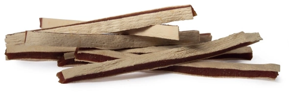 Swietny smakolyk nawet dla malutkich pieskow. Moj dostaje paseczki pociete nożyczkami, zeby bylo bezpiecznie. Mozna takze porwac palcami, wiec sprawdzi sie tez na spacerach. Piesek uwielbia te paseczki.