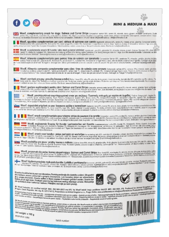 Woolf Przysmak Pies Salmon With Carrot Strips, 100g