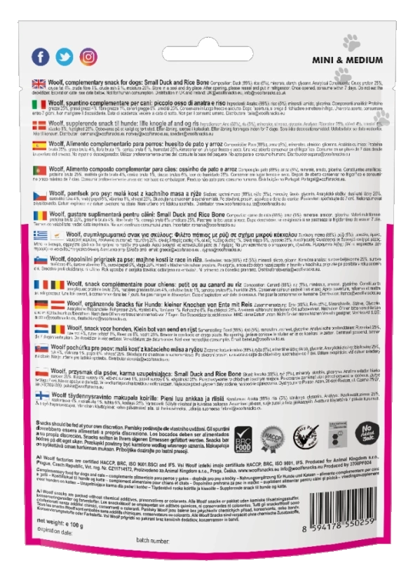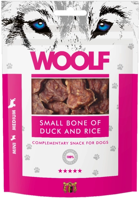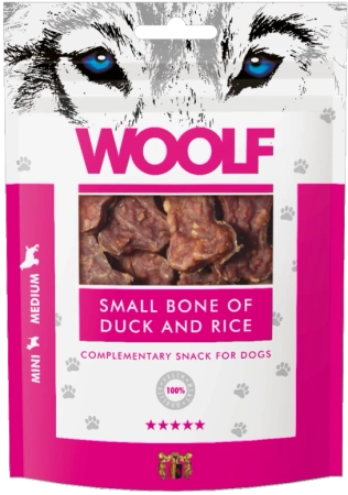 Woolf Przysmak Pies Small Bone Of Duck And Rice, 100G to pyszna przekąska dla psów. Idealnie sprawdzi się jako dodatek diety oraz nagroda podczas treningu.