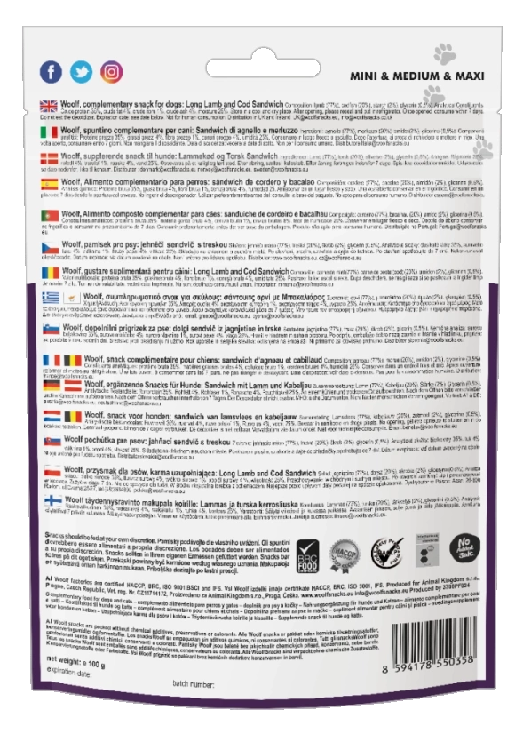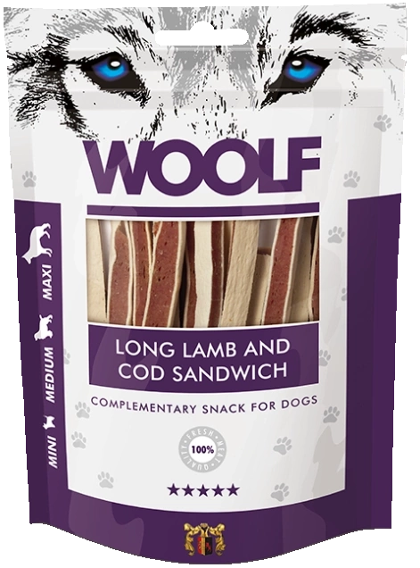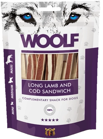 Long Lamb and Cod Sandwich (Długie kawałki jagnięciny z dorszem) - przysmak dla psów wszystkich ras.