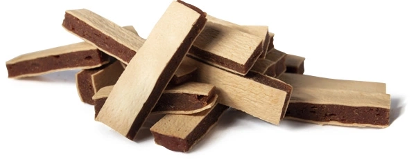 Przysmaki przygotowane są w 100% z wysokiej jakości źródeł białka aby zapewnić najwyższą jakość i najlepsze spożycie przez zwierzę. Produkty raz przygotowane są od razu pakowane bez dodatków chemicznych, barwników i konserwantów.
