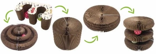 Dzięki podwójnej konstrukcji, drapk oferuje znacznie większą powierzchnię do drapania, przy zachowaniu zaskakująco kompaktowych wymiarów 17,5 x 17,5 x 17,5 cm.