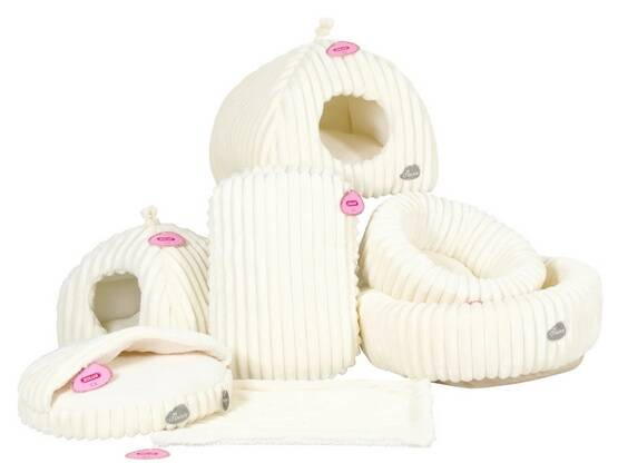 W skład gamy wchodzi 5 wzorów: otwarte legowisko, półotwarte legowisko, poduszka, igloo oraz pled, w dwóch eleganckich kolorach: beżowym i różowym. Z myślą o właścicielach dużych kotów lub większej ilości zwierząt, legowiska oraz igloo zostały stworzone także w rozmiarze XL.