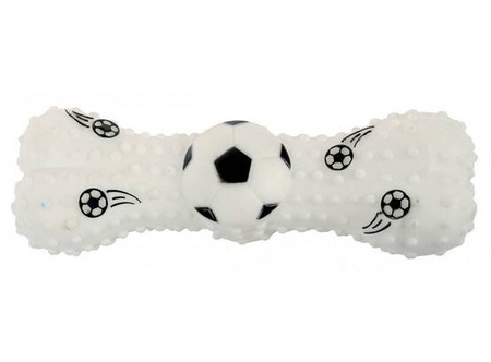 Z zabawką w kształcie kości z motywami piłki nożnej i wypustkami twój pies może bawić się i trenować jak zawodowiec!